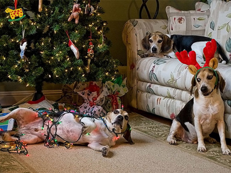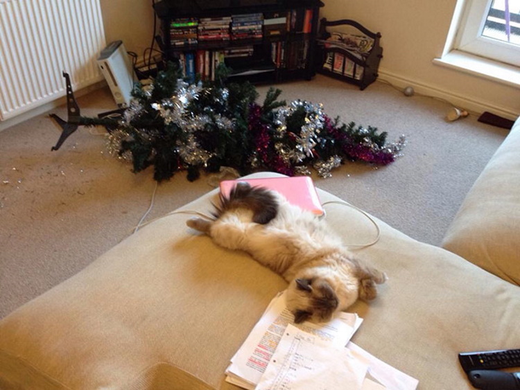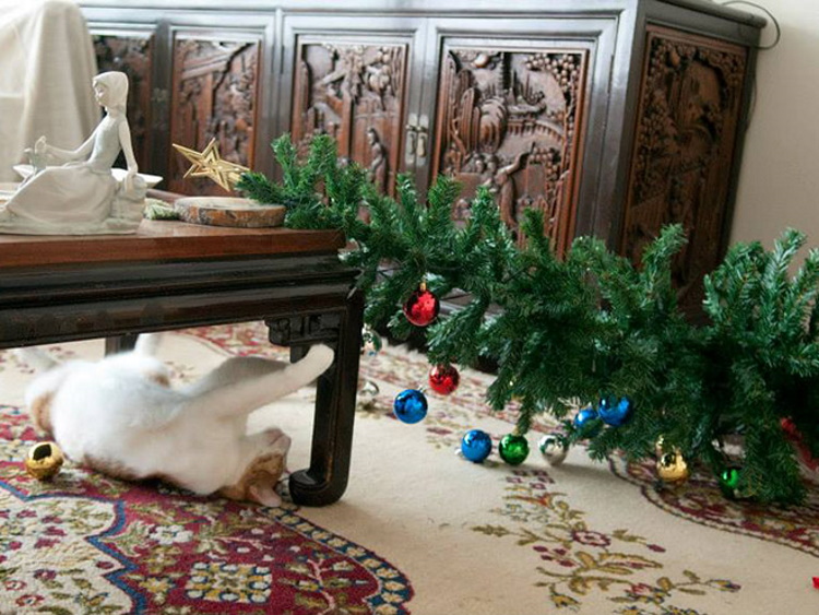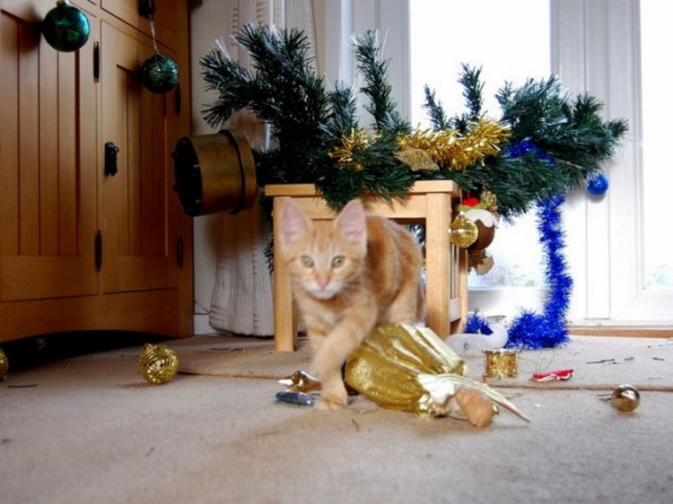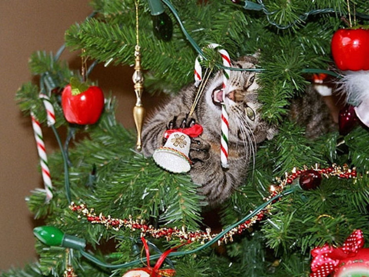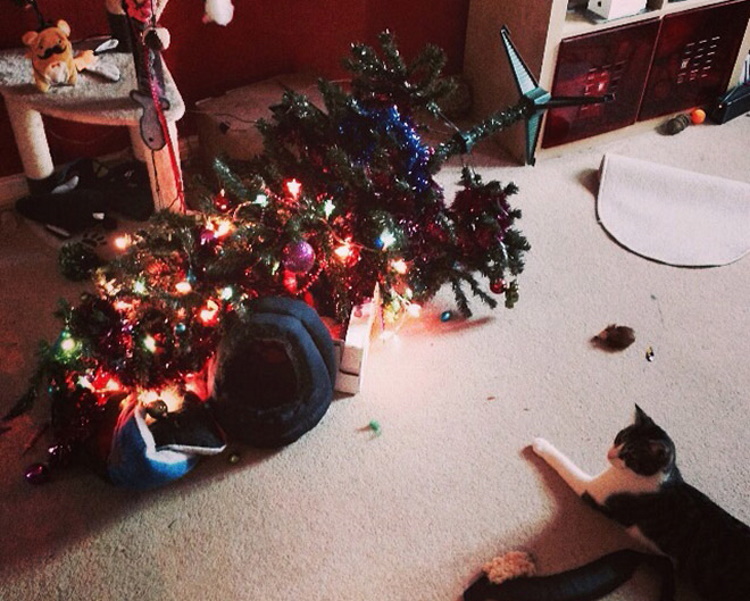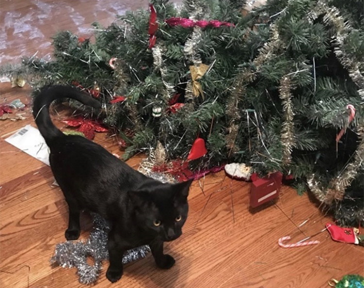 It seems that cats are executing some kind of rite of revenge against the Christmas trees.