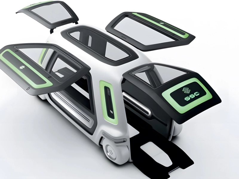 Then, you drive your tiny PIXY pod into the SS (sharing coach), which has room for two PIXY pods, when you need to go from one place to another. The pods can then be driven by the PIXY operator to the next location inside an automobile. Social distancing will become much simpler in the future.