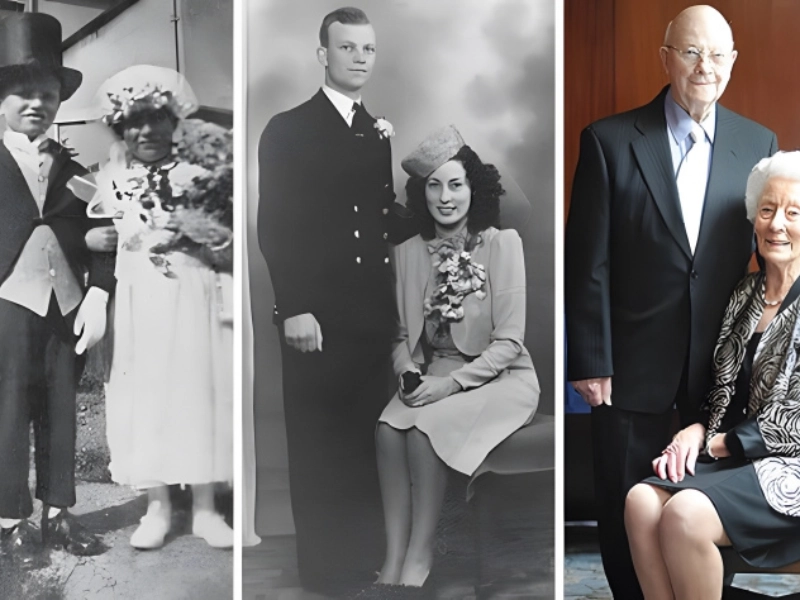 It depicts three eras of the couple’s life: (1) their childhood; (2) when they fell in love with one another; (3) a contented smile on their faces that suggests we have effectively lived our lives together.
