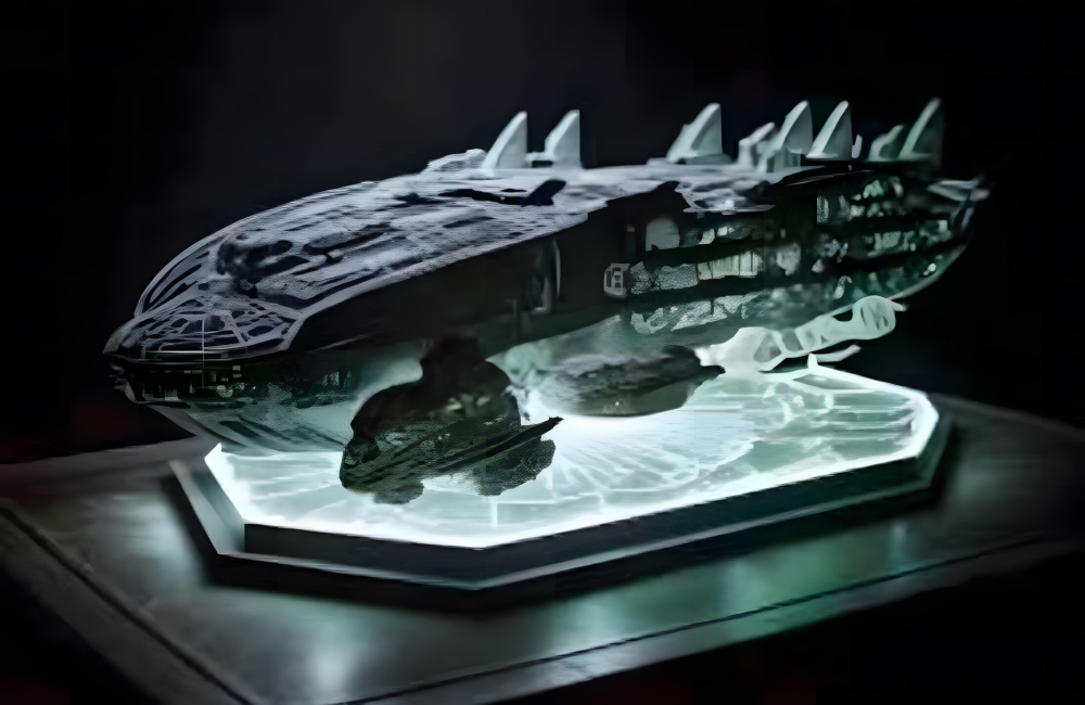Found in the Facebook group AI Art Universe (which is full of cool photos such as this) was this 3D hologram of a spaceship. This spaceship is a look at what could come, either from we humans on earth or something out there.