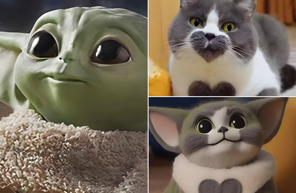 Al Molodca on social media came up with these artistic AI creations, which feature two things combined into one with the help of Midjourney. Here, we can see Baby Yoda, the breakout star of the Mandalorian, combined with a cat.