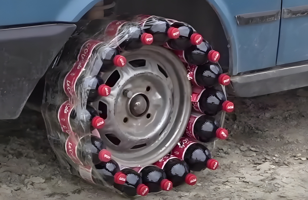 Most of us might call for a tow and take the shame, but others? Well. They just won’t be beaten. Why call for help when you can just pop to the nearest store and buy 16 bottles of Coke? Stick them on with tape and what do you have? A $20-dollar accident waiting to happen, but that’s not the point.