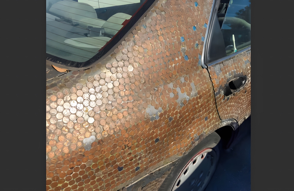 One person answered that question so the rest of us don’t have to, by gluing pennies all over their vehicle. The reasoning is unclear. Maybe they didn’t want to haul their cookies down to Bank of America? Maybe they just wanted a little extra luck? We’ll never know.
