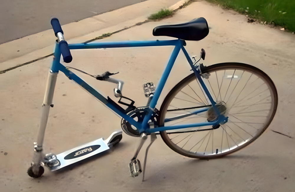 Some things in life just aren’t meant to exist. Scooters and bikes work perfectly well as separate inventions, but that just wasn’t enough for this inventive mastermind. One saw-happy cyclist decided to merge the two, creating a strange frankenbike that should never have seen the light of day.