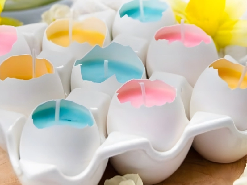 Once more, this technique works better with huge eggs. The eggshells should be fully boiled and dried before adding wax and a wick. To give the eggs an even more festive flair, you might choose to paint or dye them beforehand.