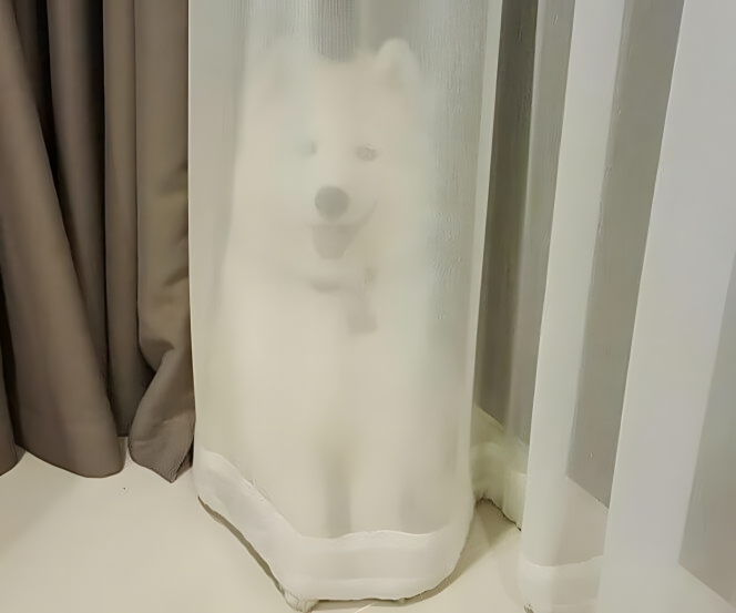 If you were wondering if only your dog were terrible at hiding, then let us reassure you that your dog is not alone. All dogs seem to be terrible at this particular skill. If you need another example, just look at this adorable white, fluffy dog who appears to be operating under the belief that sheer, see-through curtains are actually one-way mirrors. While he can see us, we cannot see him.