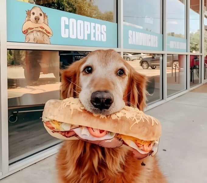 Adopting an animal is a serious decision that cannot be taken lightly. When this couple finally came to the decision to adopt an adorable puppy, they did not expect that he would become a sandwich thief so early on. His first meal after being adopted was a sandwich that he had swiped off the counter. The puppy grew up and eventually became the face of his sandwich shop.