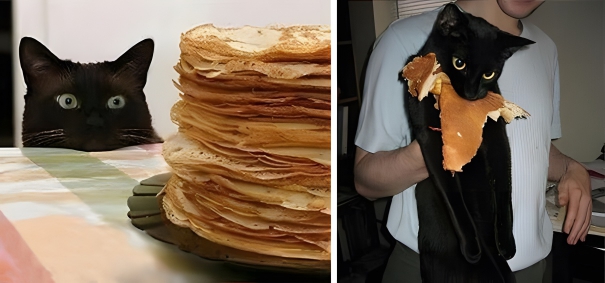 In most criminal prosecutions, one must go through a system of justice to prove if someone is guilty or not. Part of this process is proving that the alleged criminal had motivations and had planned out their actions. Since that is the case, this cat burglar is going to jail for pancake thievery. In the first photo, you can clearly see premeditation in how the cat is eyeing those pancakes.