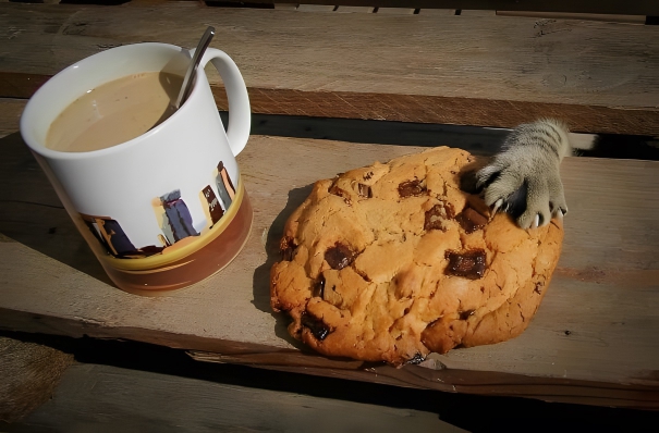 It is pretty common for people to take photos on social media of their meals. This person wanted to take a photo of their picture-perfect cookie and coffee, but after taking the picture for social media, they noticed that something seemed off about the photograph. Upon closer inspection, the person realized that there appeared to be an animal’s paw coming up from between the cracks of the porch, and it was reaching for the cookie.