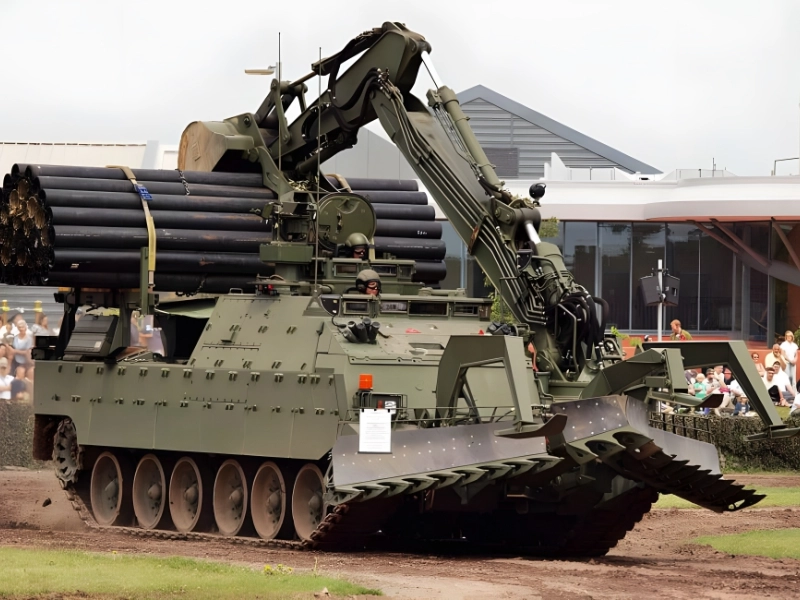 Although it lacks the primary armament, the AVRE shares almost the entire tank chassis of the Challenger 2. Its hydraulic excavator arm, which can clear barriers, excavate regions, detonate mines on contact, and deposit fascine, takes the place of a turret. The construction of each unit costs about $6.7 million. So far, thirty-three have been constructed.