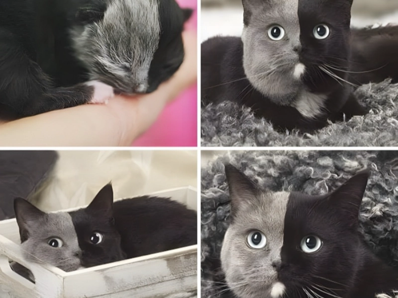 Narnia is exactly such a wonder in the amazing field of feline genetics, where we sometimes come across animals that seem to defy natural rules. The coat of this remarkable cat is exactly split down the middle of its face: one half pitch black and the other a sophisticated grey, giving an appearance so exact it seems almost synthetic. With the line running directly down the centre of the face, this divide is especially perfect—a living example of the old yin and yang theory of balance and duality.