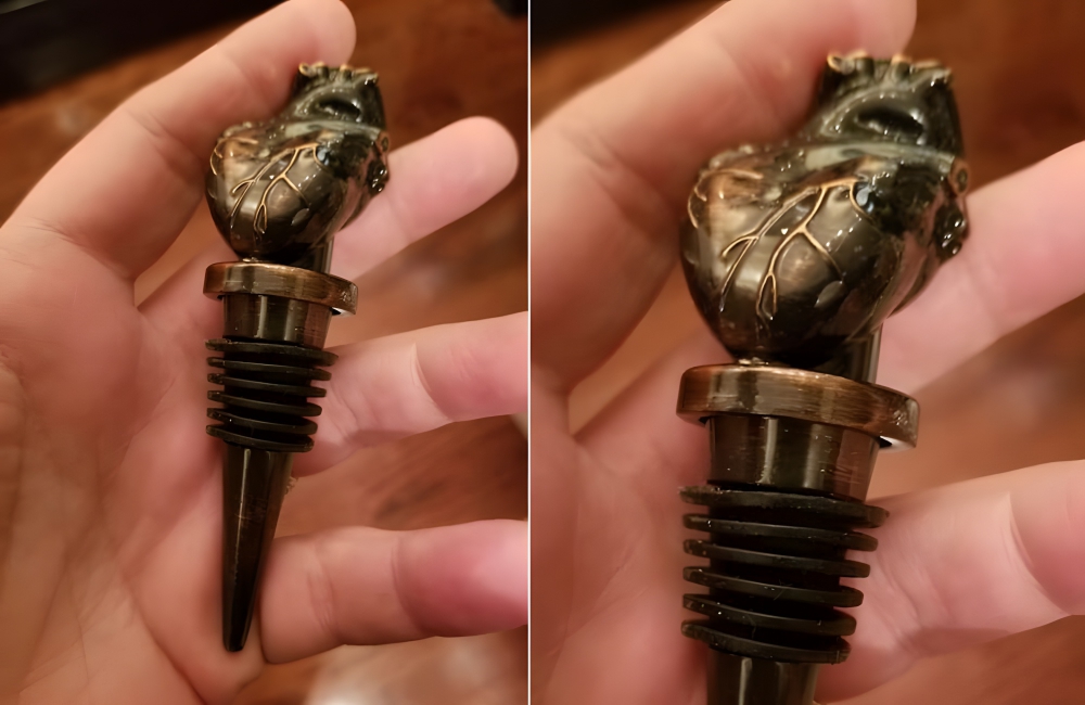 Found at: UnknownEstimated Value: $25*Wine stoppers come in many shapes and sizes, but usually, they aren’t anywhere near as pretty as this. One nurse found this in an unknown thrift store. Needless to say, she had to have it. While it may not be for everyone, the bronze human-heart replica will certainly get dinner guests talking.