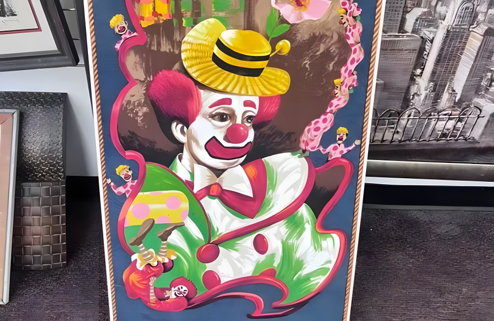 Clown Art r/ThriftStoreHauls/RedditThe clown has a solemn expression on his face and is depicted in a kind of wasteland that’s still surrounded by blooming flowers. It’s evident how much thought has been put into this painting, and anyone would love to know more about its backstory, so let’s just hope the original artist signed the painting.
