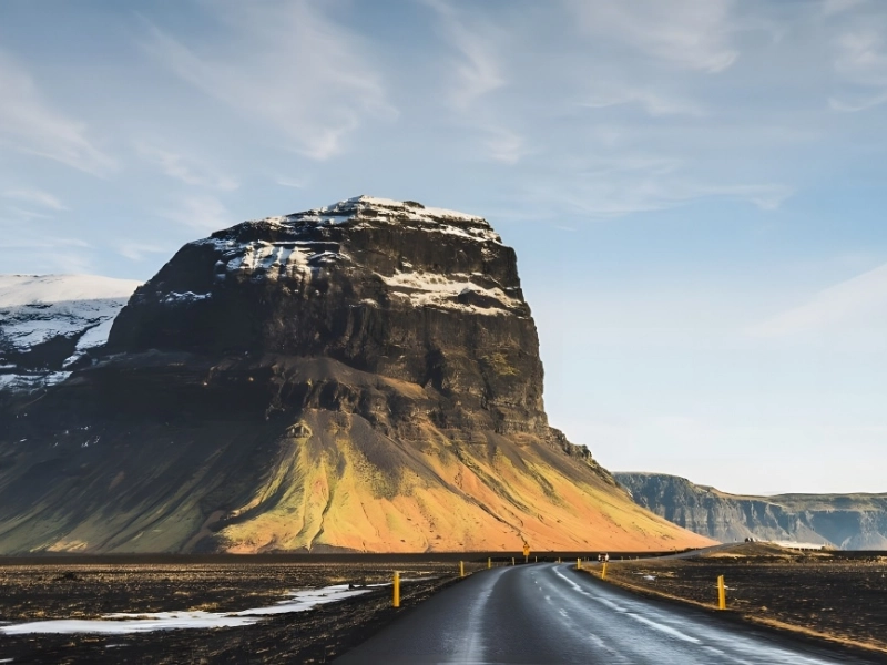 In Iceland, mountains can grow to a height of just less than 7,000 feet. This image captures Iceland’s breathtaking natural beauty, which, under certain circumstances, may be frightening. Comparing this mountain to the level road makes it appear quite tall.