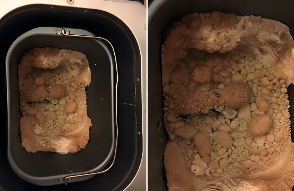 How this happened is unclear. There must have been a serious miscommunication when it came to reading the instructions on how to make a loaf of bread. This bread looks like it came off of the surface of Mars, not from inside a breadmaker.