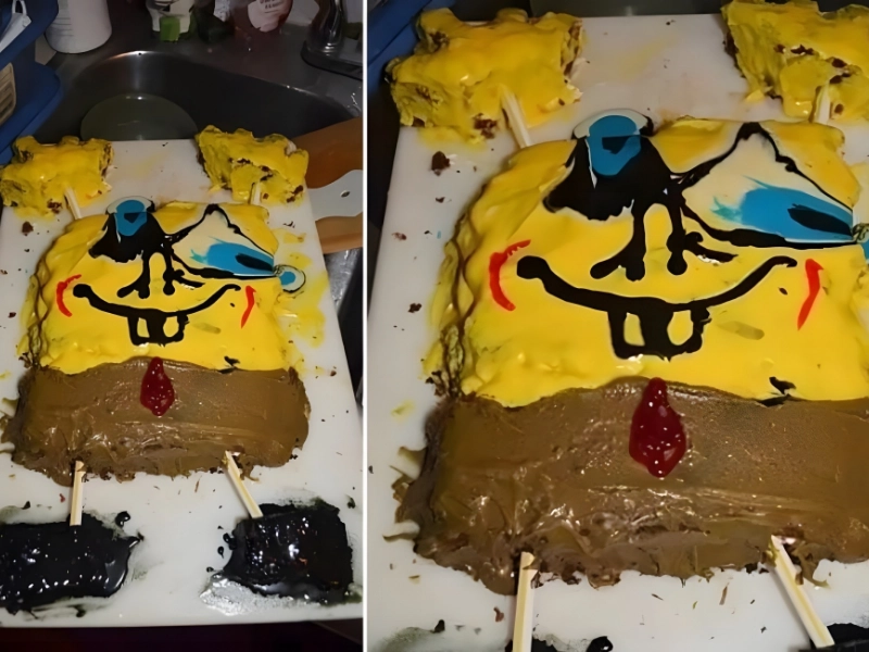 This person wanted to make Spongebob into a cake since they were so in love with him. That was a sponge from hell for what transpired next. This cake appears to have been frosty immediately after it was taken out of the oven, which is definitely not recommended.