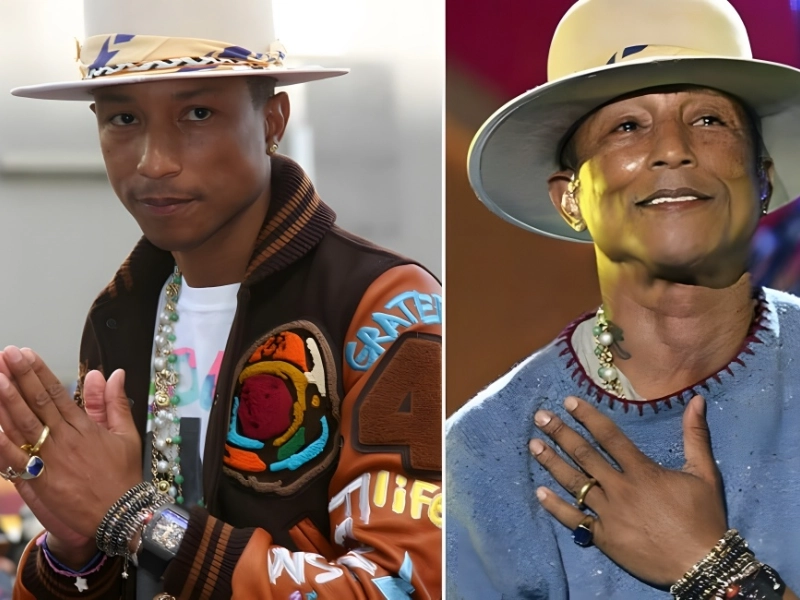 Pharrell, the rapper, is another celebrity who never seems to get old. The artist and producer, 48, appears unwrinkled, and pictures of him with his younger self from thirty years ago show no changes. Even more, Pharrell was compelled to admit to the world that he was not a vampire.