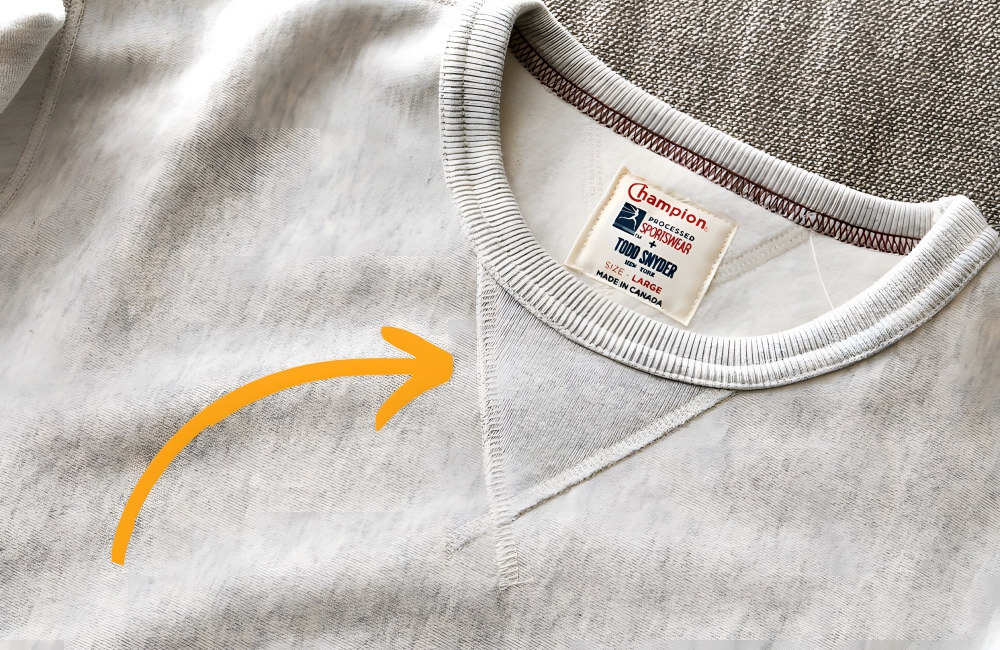If you take a look at any sweatshirts you have hanging in your closet, you might see that they have a V-shaped stitch at the middle of the collar. There is a purpose to this stitch, which is called the V-stitch, V-insert, or the “Dorito.” It’s become less common over the years, and many brands have phased it out.