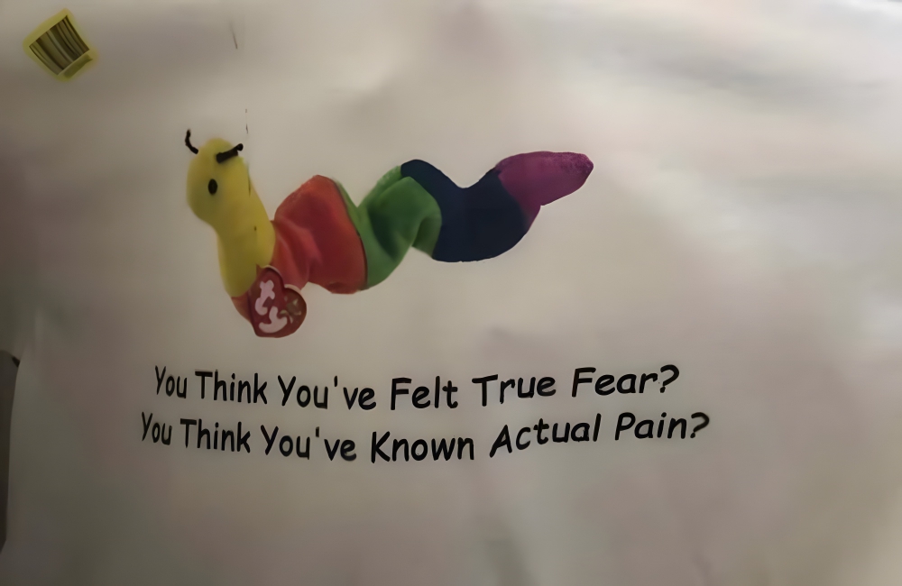 Beanie Baby T-shirt r/ThriftStoreHauls/RedditThis beanie baby t-shirt looks pretty cute, but on closer inspection, it reveals the threatening message it hosts. In any case, shirts like these can make quite a statement. All you need to accessorize them with is a pair of jeans and some statement earrings, and you’ll be all ready.