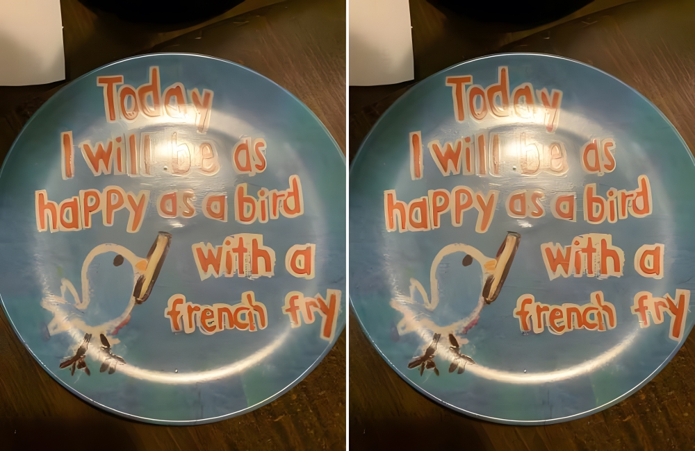 Bird Plate r/ThriftStoreHauls/RedditThis birdie is here to brighten up your mornings by telling you to be happy. After all, fries bring people joy regardless of the time of day they’re served in. It’s sad to think that someone gave up this plate, but we’re glad someone else gave it a lovely home.