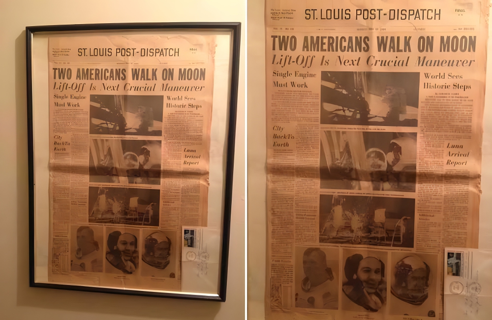 Newspaper Clipping Out Of This World r/StLouis/RedditThe frame cost only $35, which is a great price for a historical souvenir. Although you can easily access this newspaper clipping online, there is something about having a real clipping framed in your house. The frame is only bound to increase in value daily, making it an excellent catch.