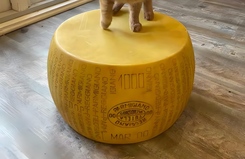 Plastic Cheese Wheel r/ThriftStoreHauls/RedditThis individual’s cat also seems to love the wheel, so maybe it could become a plaything for your pets. You could also use this as a footstool in the living room. However, the wheel is a little too expensive to treat lightly, so we know that only the most devoted cheese enthusiasts will put their money into this. Place some plastic mice by the side, and you can have a very cool display for the house.