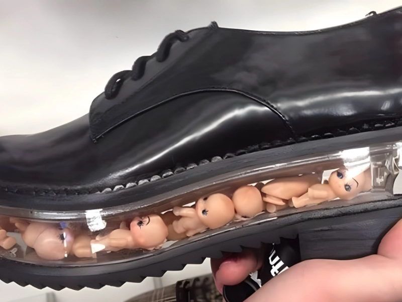 Pinterest, Quicetopia, and Baby Stuffed Shoes These seem to be black, clear-heeled shoes with small dolls sitting in the space between the platform and the heel. Thankfully, the little baby dolls don’t appear to be in pain, despite being oddly nude. We don’t know if the customer purchased these infant step shoes, nor do we know what kind of art statement this “shoemaker” was attempting to make.