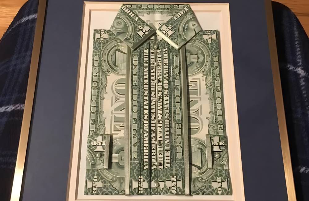 Found at: Thrift StoreValue: $0.50*When you look at this, the math really isn’t there. According to the lucky person who realized that the math didn’t add up and quickly bought this, this framed artwork cost just $0.50. However, the interior itself, which features a button-up made of money, is composed of six $1, uncut dollar bills.
