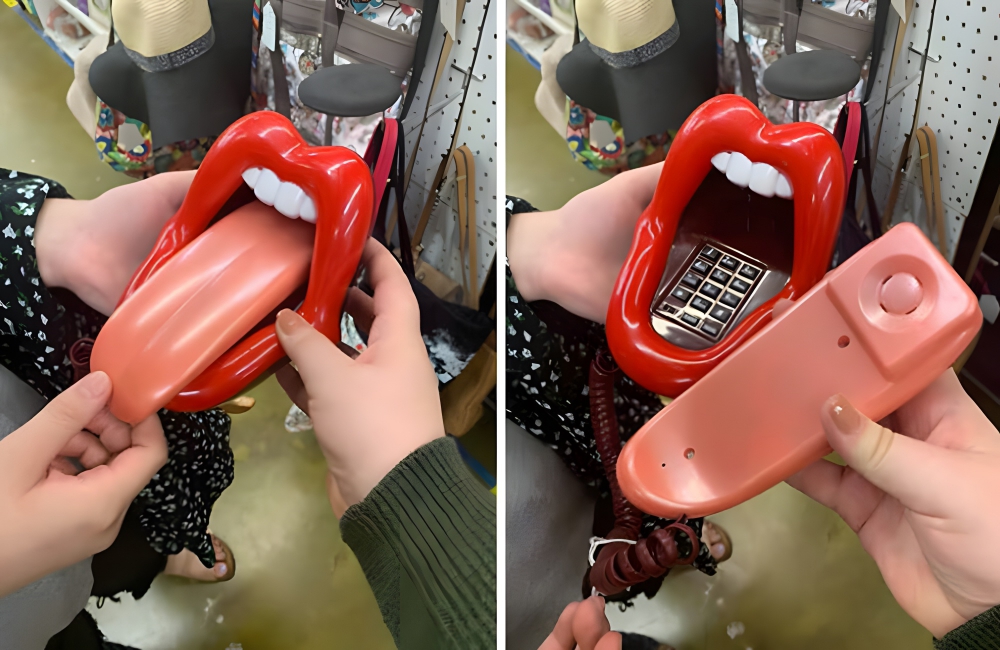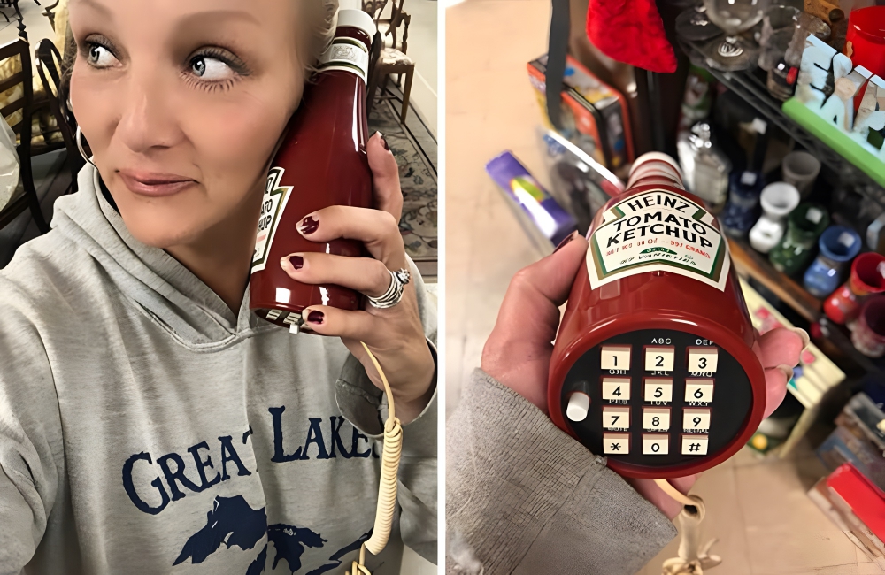 Found at: Thrift StoreValue: $45-$50*If you didn’t see the keypad on the bottom or the cord, you might think this woman was literally talking into a bottle of ketchup. Luckily, however, it’s nothing so concerning, just a phone disguised as a bottle of Heinz Tomato Ketchup. The keypad at the bottom and the phone cord are the only ways to tell what this realistic-looking bottle actually is.