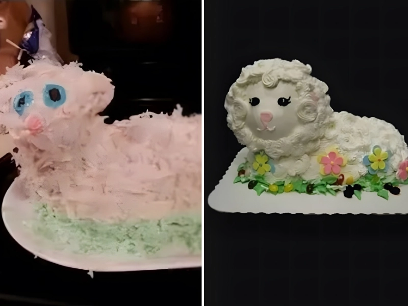 Not every child receives a beautiful birthday cake on their special day, but most of them desire one. In this instance, the unfortunate, gullible recipient received something more akin to a nude mole rat than a charming farmyard animal from a nursery rhyme.