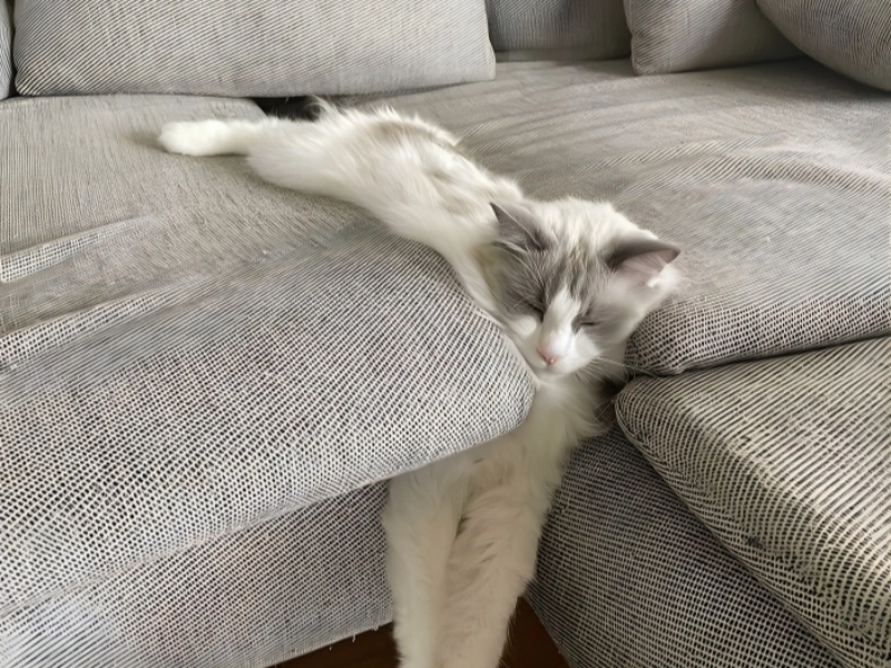 The sofa seems to be giving the cat enough room to truly relax and feel free as well as supporting her enough to remain comfortable.