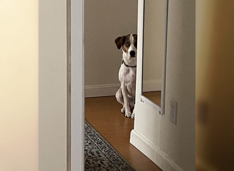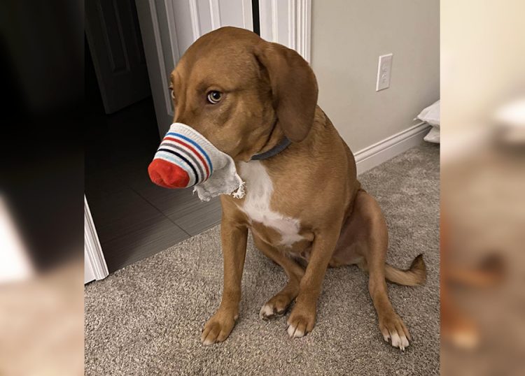 Too inquisitive dog.