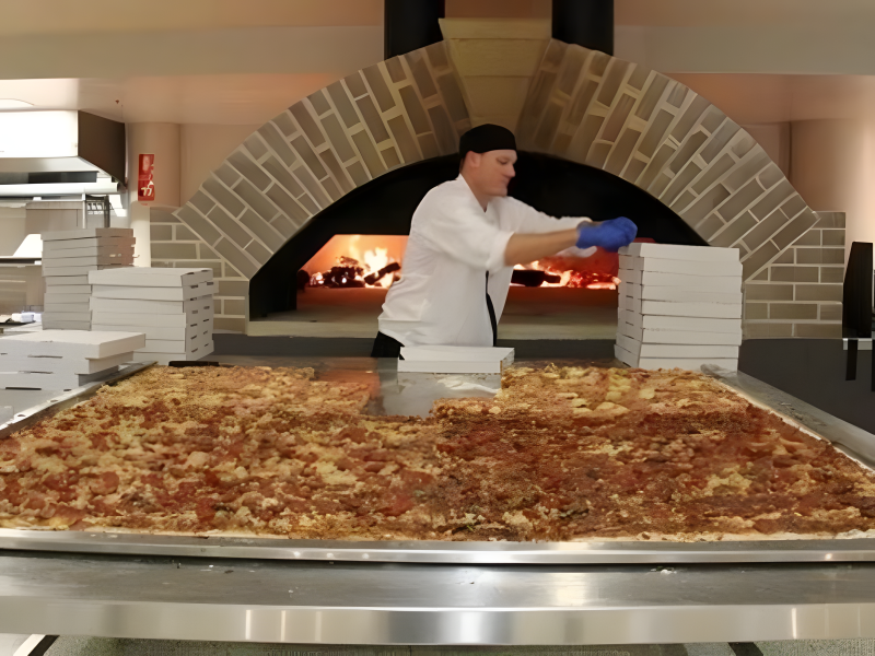 The largest pizza was for sale at a restaurant at Sydney’s Allphones Arena in 2012. Additionally, the restaurant hosted speed-eating competitions. The team who finished the meal first won four tickets to every stadium event for a year.