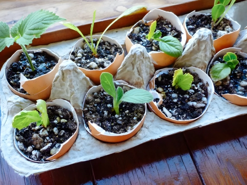 Eggshells can be reused as seed starters, with an average price of $1.48 per dozen.