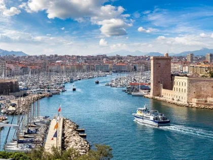 Marseille liegt am Ufer des Golfs von Lyon und ist eine bedeutende Hafenstadt im Süden Frankreichs. Die Stadt liegt über terrassierten Hügeln mit Blick auf den Golf. Im Alten Hafen, einem Bootshafen im Stadtzentrum, wird immer noch frischer Fisch angeboten.