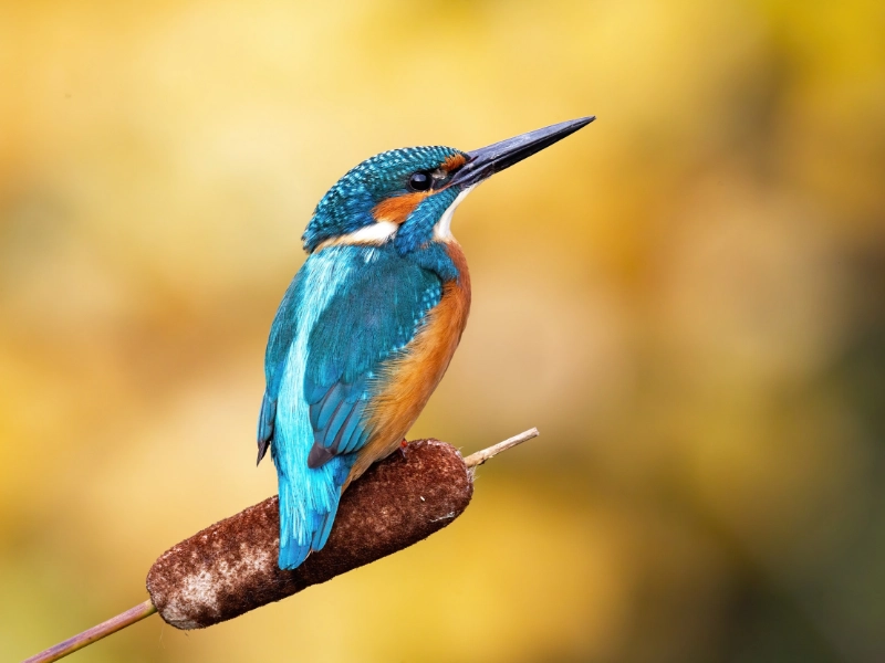 With a wingspan of 25 cm and a weight of 45 grams, the kingfisher is a little bird that is somewhat larger than a sparrow. Fish that kingfishers catch by diving underwater is their food source. Perched on branches above the water, they wait for their meal before diving for the fish.