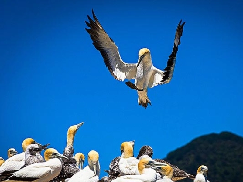 With a body length of up to 48 cm and a wingspan of up to 73 cm, shearwaters are huge seabirds. Their heads are black and their bodies are white. Shearwaters are skilled divers and have the ability to fly underwater. 180-meter depths have been reached to see these birds.