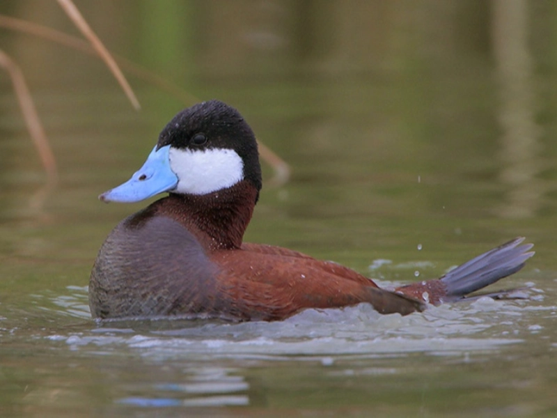 The duck family includes the Ruddy Duck as waterfowl. Ruddy Ducks, which have a maximum body length of 58 cm, are skilled divers who can descend to a depth of 10 meters and remain submerged for one minute in order to capture mollusks.