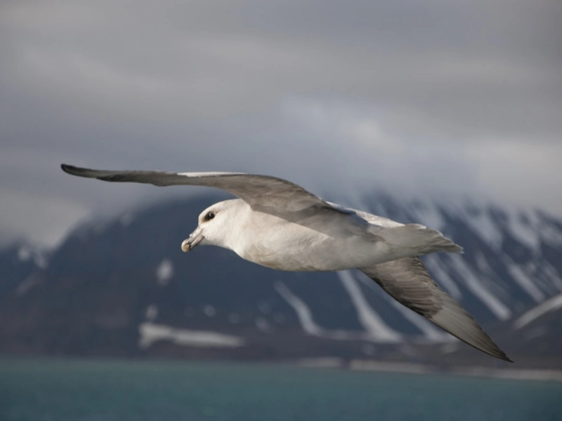 Large seabirds, fulmars can grow up to 91 centimetres in length and have a one meter wingspan. Fulmars dive exceptionally well, reaching depths of up to 25 meters from heights of 10 to 100 meters. They can travel at up to 140 km/h in the water.