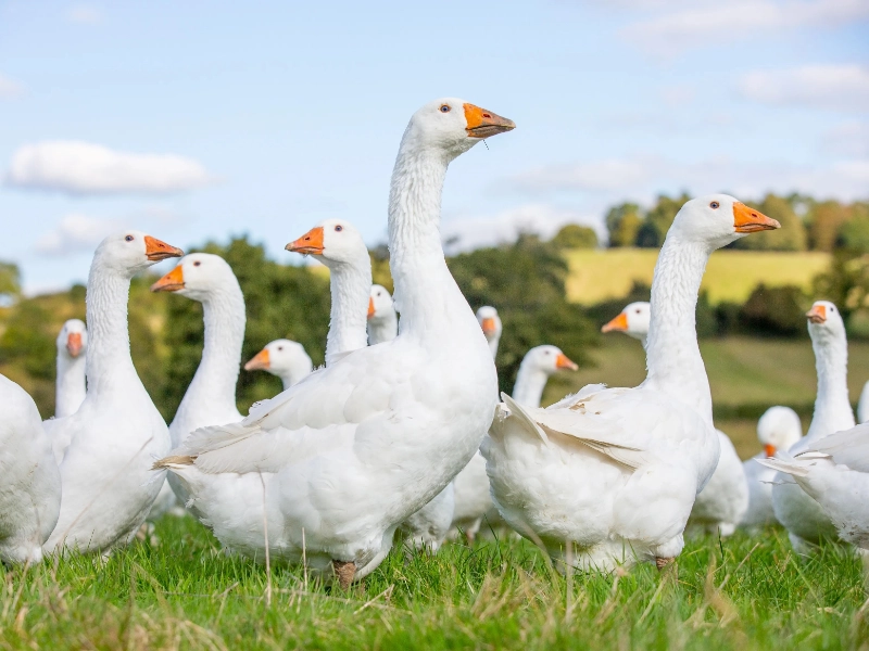 Large members of the duck family, geese are distinguished by their enormous proportions and lengthy necks. Similar to ducks, geese can dive, but they do it far less effectively. Geese spend most of their time on land.