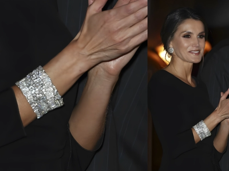 The Joyas were originally owned by Queen Ena, who stipulated in her testament that the diamonds would be passed down from queen to queen back in the 1960s. The two matching bracelets made of diamonds are typically worn in tandem. These diamonds are thought to be worth $7.2 million, which is a small portion of Letizia’s $42 million jewelry collection.
