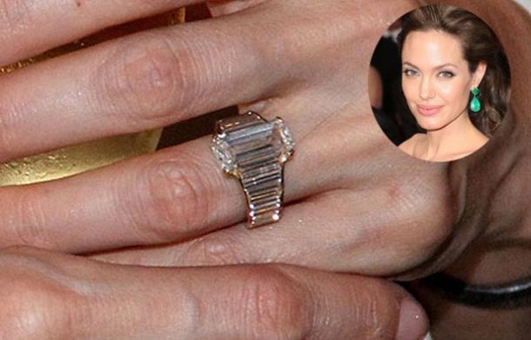 Wedding ring for Angelina Brad Pitt created together with the famous jeweler Robert Prokop. It was made specifically for the finger of the woman, and is decorated with a large diamond worth 250 thousand dollars.