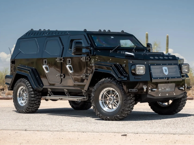 This $629,000 beast, derived from a Ford F-550 Super Duty chassis, stands among the most dramatic changes in the armoured vehicle scene. Hand-built from the ground up, the vehicle boasts military-grade armour plating and ballistic glass able to block high-powered rifle bullets. Comprising premium conveniences such a built-in safe, night vision cameras, and optional electrostatic window tinting, the 400 square foot inside space Features a reworked 6.8-liter V10 engine and reinforced gearbox, the powertrain is updated to manage the 13,000-pound weight.