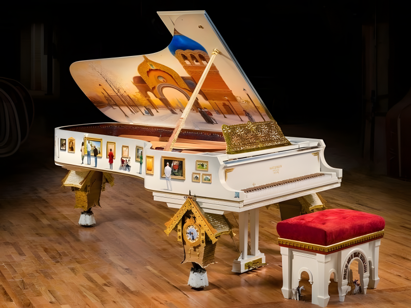 The priciest grand piano on the market is valued at $2.5 million. It’s a Steinway & Sons Pictures piano, painted by Paul Weiss and designed in homage to Russian musician Modest Mussorgsky. The piano has cuckoo clock-inspired legs and other Russian-style features. My untrained eye finds it to be extremely distasteful.