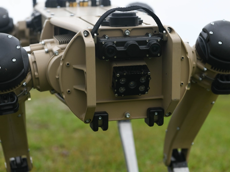 Through its original hydraulic system design, the Whisper Tech RT-200 presents inventive noise reduction. This robot dog achieves very smooth motion with minimum mechanical noise by using nano-fluid dampeners in all joint mechanics. The platform boasts a novel carbon fiber exoskeleton that absorbs vibrations before they can produce sound waves. While the internal components are set on acoustic isolation platforms, its exclusive “Silent Step” technology uses pressure sensors to maximize foot positioning for lowest impact noise. Shielding the electronic systems of the RT-200 in sound-absorbing chambers produces an operational noise level of just 12 dB during normal movement.