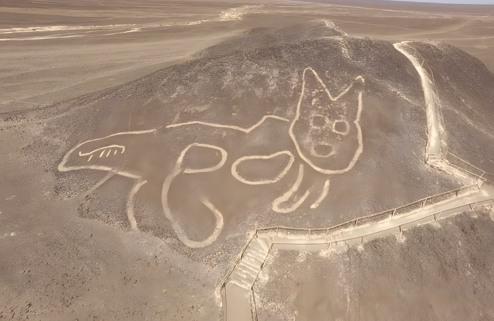 61. A Huge, 2000-Year-Old Cat Figure Found Carved into Peru Hillside