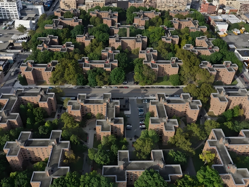 Even if you’re not from New York, you’ve probably heard of the projects; nevertheless, not many people actually get to see the city from above. Viewers can observe the oddly formed houses and the true population density of the public housing from this daylight view.
