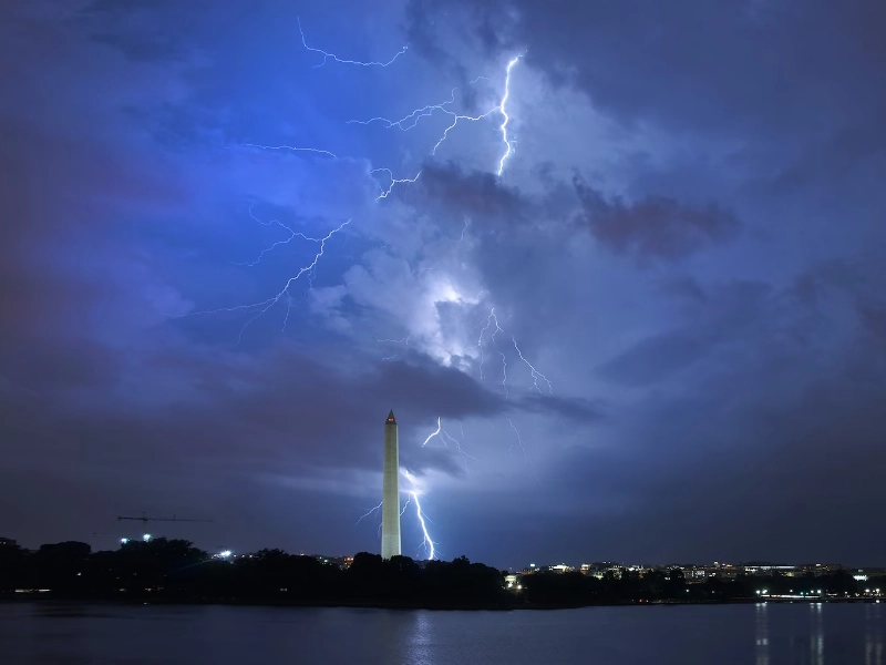 The apparent colour of lightning can be much changed by its altitude. Higher altitudes, usually exceeding 20,000 feet (6,100 meters), are common sites for blue lightning. The air is less dense at these altitudes, and less particles exist to disperse the light. This lets the blue wavelengths move more unhindered towards the observer’s eye.