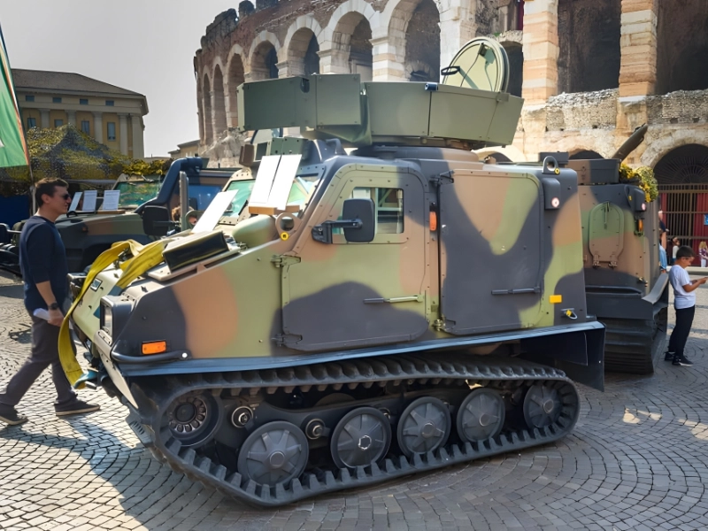 The Swedish Army is currently using the Hagglunds Bandvagn 206. This military vehicle is an articulated, tracked, all-terrain vehicle. The vehicle was created by BAE subsidiary Hagglunds and comes in two units. Seventeen people can fit inside the car.