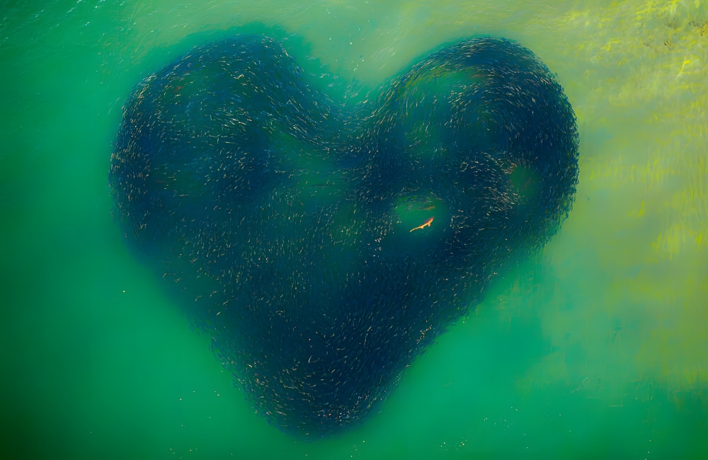 This stunning image won the Drone Awards “Photo of the Year.” Photographed by Jim Picot, this intriguing, heart-shaped photo features a shark swimming inside a school of salmon. As the shark is chasing the baitfish, the shape turns into an uncanny heart shape.